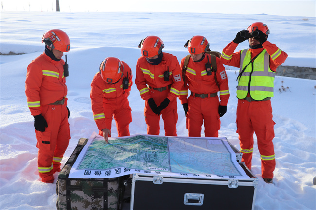 针对当前疆内地震多发频发的严峻态势,此次地震救援行动演练,大队坚持从难从严从实际出发,旨在锤炼队伍在极端复杂严寒等条件下综合应急救援能力,以便有效应对随时可能发生的地震灾害。接到预先号令后,大队第一时间启动应急响应,转换战备等级,迅速收拢队伍,检查携带救援装备数质量,补充给养物资器材,明确机动方式和人员、车辆编成,同时第一时间派出侦察小组赶往灾害现场收集信息,为后续救援队伍指挥决策提供重要支撑。