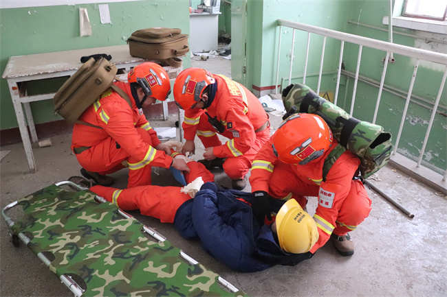 本网讯:(杜焌)“接上级通知,阿勒泰地区富蕴县发生X级地震,建筑物倒塌、X名人员困,上级命令我大队迅速前往受灾地点实施救援……”。近日,新疆富蕴县森林消防大队严密组织地震救援实战演练。