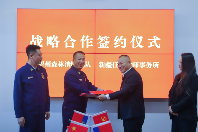 仪式上,赵永波代支队长、支队张涛政委与任勇刚执行主任代表双方共同签署了《伊犁州森林消防支队与新疆任远律师事务所共建合作协议》。协议签订后,律师同志在赵永波代支队长、支队张涛政委的陪同下参观了支队队史馆,了解了支队全面建设情况。