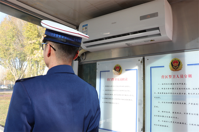 哨位保暖:长夜漫漫,当我们还在梦乡时,仍有同志为我们守护平安在哨位上坚守岗位,为了哨兵能够不受寒潮天气影响、在哨位上履好职、尽好责,在营门岗亭配备了空调,让哨兵同志在寒风瑟瑟中也能体会到不一样的温暖。但在深夜中大家总是习惯性的将空调温度调的很高,而较大的温差可能会给我们身体带来不必要的“麻烦”,引起身体的不适。所以在我们调节空调时尽量不要把温度调节的太高。