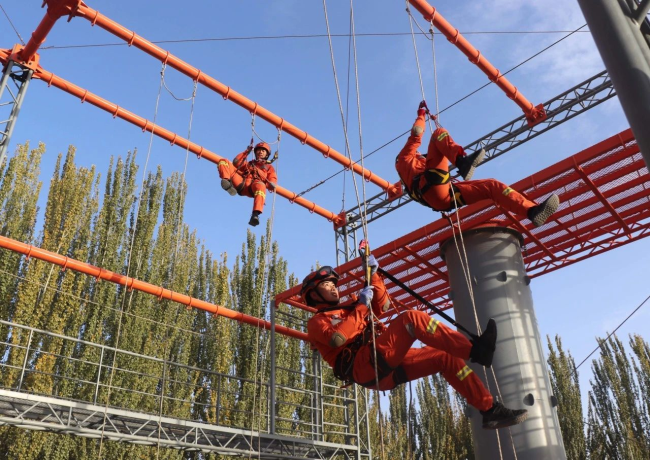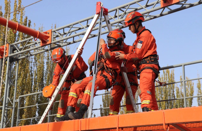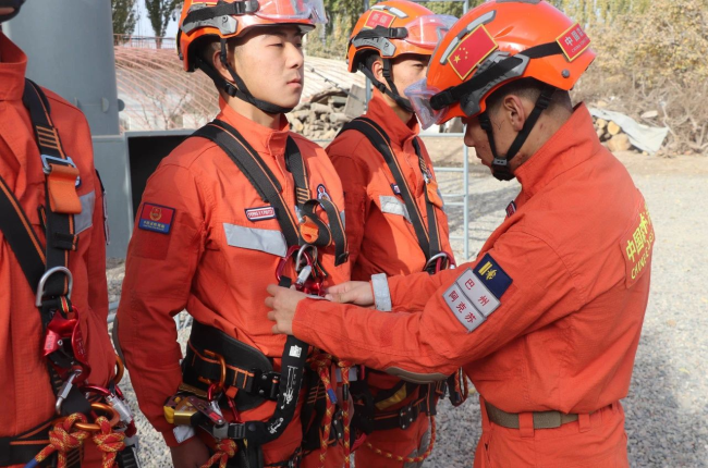 大队本着“从难从严、科学组训”原则,坚持“快速响应、科学施救、安全作业、生命至上”理念,着眼“全灾种、大应急”要求,指定前期培训骨干担任教练员,重点对上升下降、“T”型救援、深井救援、悬崖向上救援等科目进行训练。