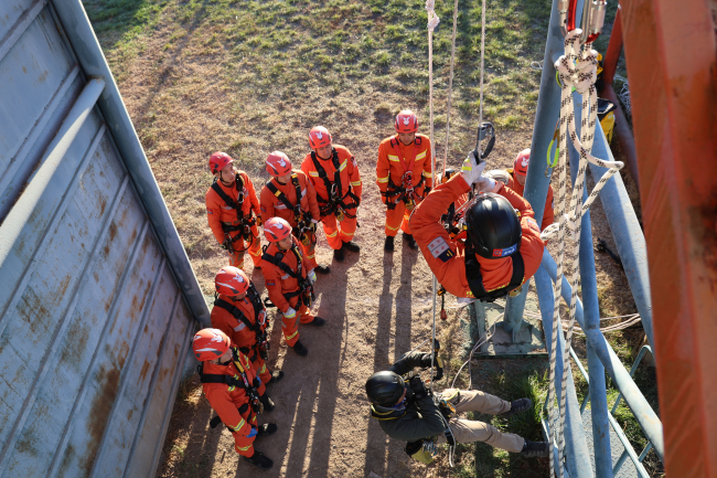 为进一步锤炼消防救援人员过硬本领,全面提升支队绳索救援能力,集训队采取分组训练的方式进行训练,将培训队分为上升与下降训练组、一对一救援训练组,确保科目训全、时间训够;参训人员聚精会神、团结协作、互帮互学,严格遵守训练纪律,认真领会技术要领,严格按照方法步骤进行训练。教练员时刻紧盯绳索系统操作的全过程,及时指出训练中操作不规范的问题,耐心答疑解惑,确保每名消防救援人员真正掌握救援系统的正确使用方法。训练结束后,及时进行总结讲评,对存在问题举一反三,并要求改正不足、多学多练,切实提升绳索救援能力。