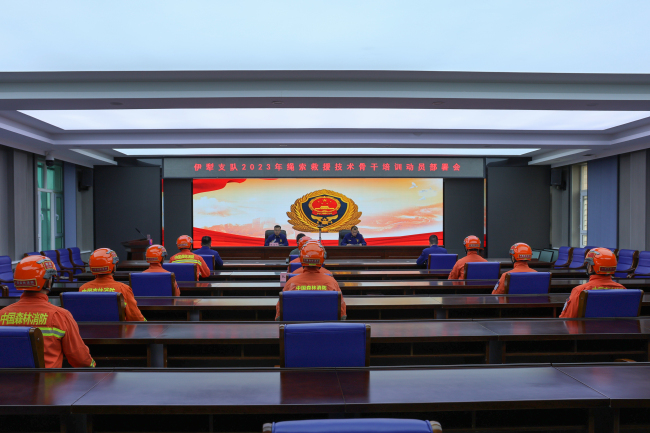 支队党委高度重视此次培训,精心谋划,切实以扎实的作风、有力的举措,努力打造一支能够高效完成伊犁地区山岳救援任务的尖刀和拳头力量。会上,支队作战训练科李战胜副科长组织学习了《伊犁支队2023年绳索救援培训方案》,教练代表和培训代表分别进行了表态发言。而后,张浩利副支队长对此次培训提出三点要求:一是要高度重视,确保活动效果。要充分认清支队党委组织此次培训的重要意义,做到多看、多想、多学、多练、勤问、勤观察、勤思考;二是要立足实际,淬练过硬本领。要充分利用现有的装备器材,紧贴真实救援场景,设险局、危局和难局,将培训的触角从课堂延伸至训练场、救援现场,切实把灾情设“像”、环境设“真”、情况设“活”、标准设“严”;三是要严格管理,确保安全有序。培训期间要严格落实操课、点名、查铺、就寝等一日生活制度,保持良好的习惯养成和正规的教学、管理秩序,确保培训全程安全。