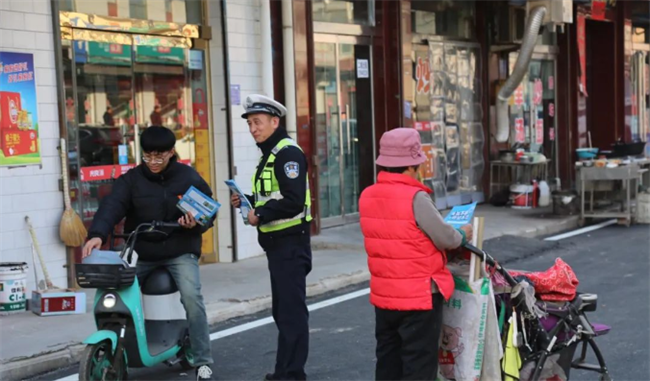 活动中,民警针对辖区冬季道路实际情况和农村“一老一小”等群体出行特点及规律,通过现场讲解、面对面宣传教育、发放交通安全宣传资料等方式,向群众讲解无牌无证、骑乘摩托车、电动车不佩戴安全头盔,酒后驾驶、超员超载、农用车载人等交通违法行为的危害性及后果,提醒群众要自觉养成文明交通,你我同行的习惯。