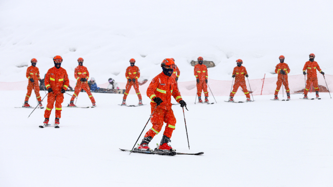 支队党委“一班人”坚持瞄准“国内领先”的目标,着力建强基本力量,加快推进能力提升,打造驻地冰雪救援拳头尖刀。依据灾害事故类型进行力量布局建设,并依托滑雪场、自然冰域、山地林地等建立实训基地和实操训练设施。协调推进禾木冬季驻防点建设,制定中长期轮流驻防规划,在执勤轮训中培养专业骨干。积极聘请专业教练、师资团队开展业务技能培训指导,通过专业培训、实战演练、课题研讨等形式,探索符合队伍实际的救援技战术。年初以来,支队依托2个大队组建了1支100人的重型队和1支60人的轻型队,邀请3名专家和AARE团队到队授课,开设2期基础和1期高级培训班,构建悬崖跌落、高山雪崩等11个实战模拟场景,涉及滑雪技术、雪地急救等7类20项内容,94%的指战员掌握基本技能,初步建立冰雪灾害专业救援训战体系。