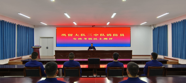 动态课目考核结束后,而后召开中队召开2023年度述职测评大会。中队干部骨干按照自身职位职责和考核内容,对本人年度思想、学习、工作、廉洁、作风等方面情况作了详细的年度述职汇报,总结了工作中取得的成绩,实事求是地列举了工作中存在的问题与不足,同时就下一步努力方向及工作措施作了汇报。在个人述职的基础上,组织全体消防员填写民主测评表,从德、能、勤、绩、廉五个方面的综合测评内容进行无记名民主投票,整个过程全程录像、严谨有序、客观公正,较为全面地掌握了全体消防员个人综合能力素质。
