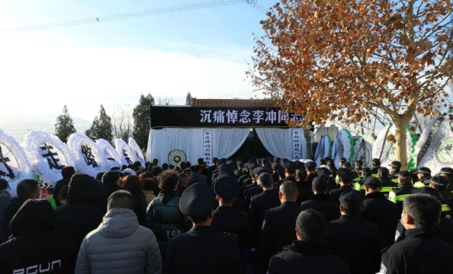 参加告别仪式的全体人员列队肃立,向李冲同志脱帽默哀、鞠躬致敬,表示沉痛哀悼和深切缅怀,挥泪送别昔日的好战友、好兄弟、好警察。告别仪式上,局党委副书记、政委关玉龙介绍了李冲同志生平,充分肯定李冲同志对党忠诚、心系群众、爱岗敬业的崇高精神,号召全局民辅警向李冲同志学习。