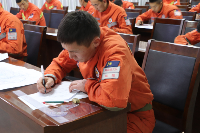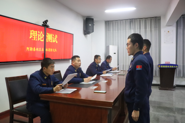 理论是指导森林消防员完成任务的坚实基础。大队采取个人自学、集中学习相结合的方法,利用休息日、饭前饭后等时机组织背记,每周组织一次理论测试。测试过程中,监考人员严肃认真,确保测试秩序正规、有序进行,参考人员能够严格遵守考场纪律,积极作答,在规定时间内全部交卷。通过测试有效检验了消防员相关理论知识的掌握情况,进一步激发了学习热情,达到了以考促学的目的。