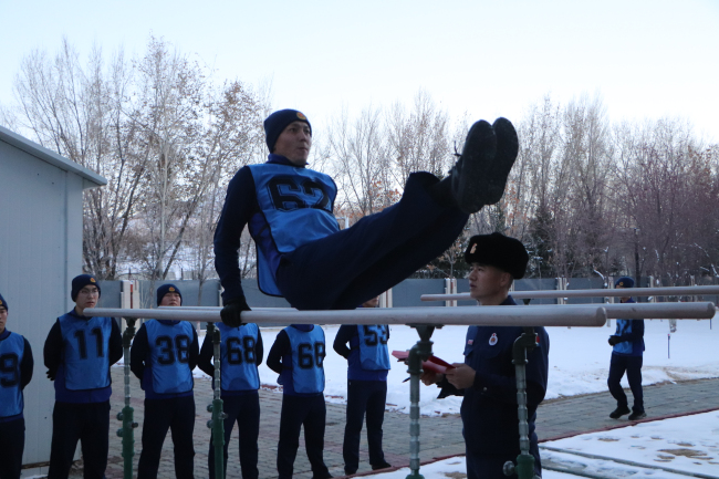 为了全面评估十一月份的教育训练成果,并深入了解指战员的训练状况,中队严密组织体能测试。此次考核,以大纲为依据。重点对5000米,单杠卷身上,双杠摆动臂屈伸等科目进行全面考核。考核开始前,队长助理白立成对全体参考人员讲清了此次摸底考核的目的,考核全程干部骨干严密组织,全员参加,保证安全。
