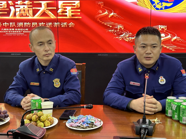 中队长胡马尔别克代表中队党支部充分肯定了两名老同志为中队作出的突出贡献,向退转消防员表示衷心的感谢和崇高的敬意,并提出三点殷切希望:“一是走上社会后,要加强学习,不断提高自我,尽快适应新的工作岗位和环境,继续发扬优良的战斗作风,为党和国家发展作贡献。二是要珍惜荣誉,铭记情谊。要不忘组织培养,珍惜集体荣誉,珍惜消防生涯,珍惜队友情谊。三是要严守纪律,树立形象。走上社会后,要做到守纪律,听招呼,讲礼貌,重安全,把消防救援队伍文明的形象洒向社会、带给家乡”。