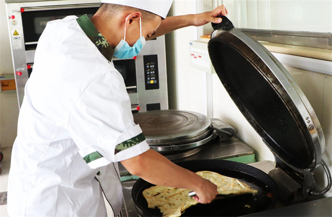 日复一日,年复一年,他们既是炊事员也是战斗员,他们在三尺灶台大显身手,在锅碗瓢盆间,奏响了最美的“火焰蓝”旋律,用“五味”谱写出“火焰蓝”的青春篇章。