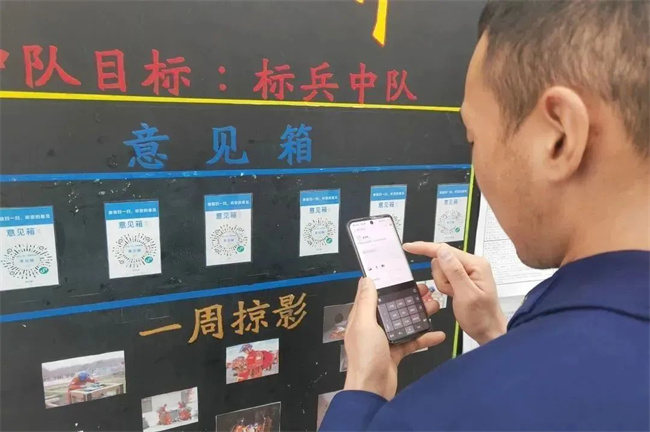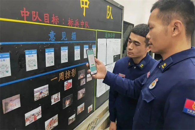 大队将干部和支委成员、风气监督员的意见码张贴在公示栏,当指战员打开微信的“扫一扫”功能扫描二维码后,就会弹出一个对话框,对想要倾诉的对象输入想说的心里话便可匿名上传到意见箱。当有人提交意见以后,微信会立刻提醒接收,第一时间收到意见。