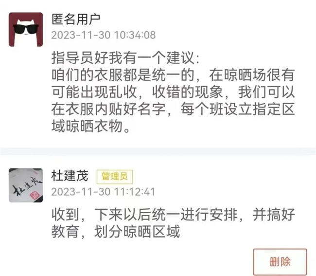 “大家的衣服有的没有写名字,在晾晒场有时会出现收错的现象,希望能够采取一些更好的方法区分衣物。”中队对这一建议迅速并拿出措施,专门在晾衣场划分各班级使用区域,为队员定制统一的姓名贴,得到了队员的广泛好评,大家再也不用担心衣服收错这样尴尬的事情发生了。