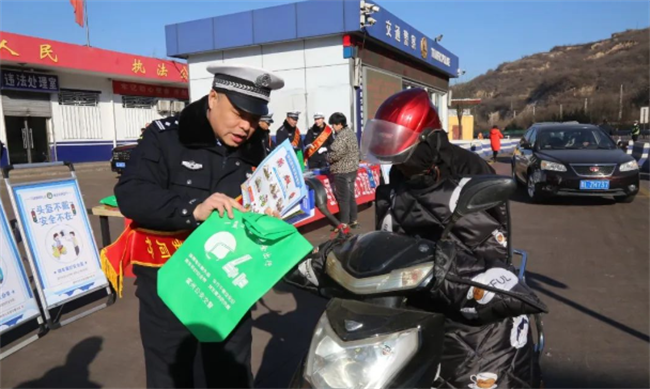 启动仪式上,民警通过摆放宣传展板、悬挂横幅、发放交通安全宣传资料、现场解疑答惑等方式,结合冬季交通安全特点和当前道路交通安全形势,向群众讲解了122“全国交通安全日”的意义和目的,重点宣传超员超速、酒驾醉驾、疲劳驾驶、农用车违法载人、骑乘摩托车及电动车不戴安全头盔等交通违法行为的危害性和危险性,要求群众要主动学习交通法律法规和行车注意事项,增强交通安全意识,安全文明行车。通过此次近距离参与,让市民群众更加了解、理解和支持交通管理工作。随后,参加启动仪式的领导为过往车辆发放并粘贴主题logo车贴。