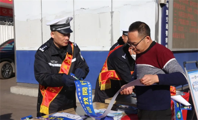 本网讯:(郝华斌)今年12月2日是第十二个“全国交通安全日”,主题为“文明交通,你我同行”。为进一步做好“122全国交通安全日”期间的交通宣传工作,全面营造交通安全日期间宣传活动声势,根据上级的部署要求,霍州市公安局交警大队于12月2日上午,在霍州署、辛置执法站设立宣传点,副大队长朱敏、李玉平、樊海波、刘亮,党总支委员薛新红带领民警开展了以“文明交通 你我同行”为主题的第十二个“122全国交通安全日”主题宣传启动仪式活动。