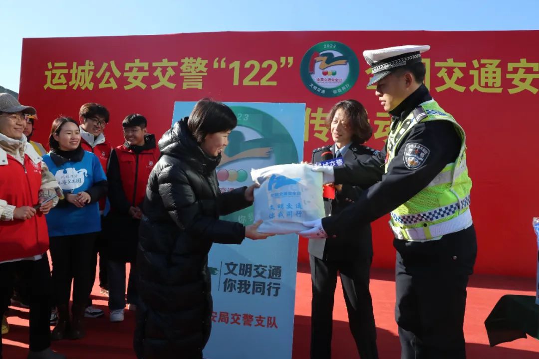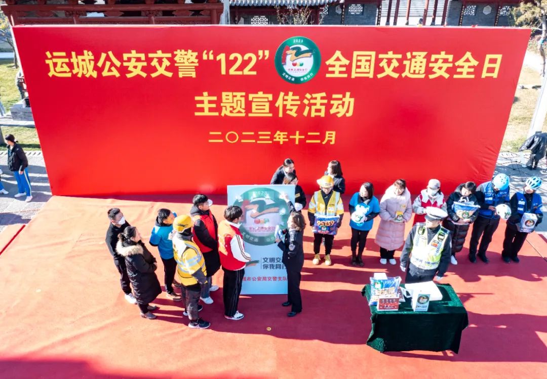 运城公安交警在辖区盐池文化博览园广场开展122“全国交通安全日”主题宣传活动。民警通过“敲安全大门,赢平安好礼”有奖知识问答、交通安全文艺汇演、设立交通安全宣传咨询台、摆放宣传版面、悬挂宣传条幅、发放交通安全宣传资料,提升全民交通安全意识、文明意识、法治意识。