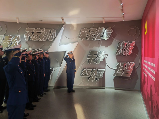 “我志愿加入中国共产党,拥护党的纲领,遵守党的章程,履行党员义务,执行党的决定,严守党的纪律,保守党的秘密,对党忠诚,积极工作,为共产主义奋斗终身……”参观结束后,现场全体党员举起右拳,再一次作出庄严宣誓,铿锵有力的声音传达出了身为共产党员的自豪感与使命感。铮铮誓言、字字千钧,既是初心使命的庄严承诺,更是接续奋斗、矢志廉洁的赤诚告白。