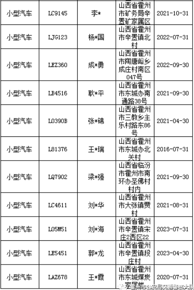 【五大曝光新闻通稿】霍州公安交警大队曝光曝光7-9座达到报废标准车辆、典型交通违法案例!