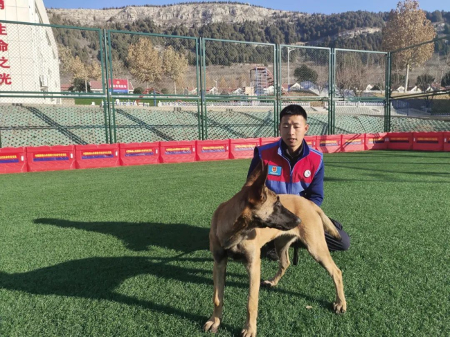 本网讯:(赵奕鸣)2023年11月,乌苏市森林消防大队消防员杨爱林携搜救犬“雨点”赴中国救援山东搜救犬机动专业支队进行培训。众所周知,消防搜救犬是消防员的“无声战友”,它们精通“十八般武艺”,在各种危险的灾害现场,帮助消防救援人员搜寻幸存者。它们是犬,也是战士!