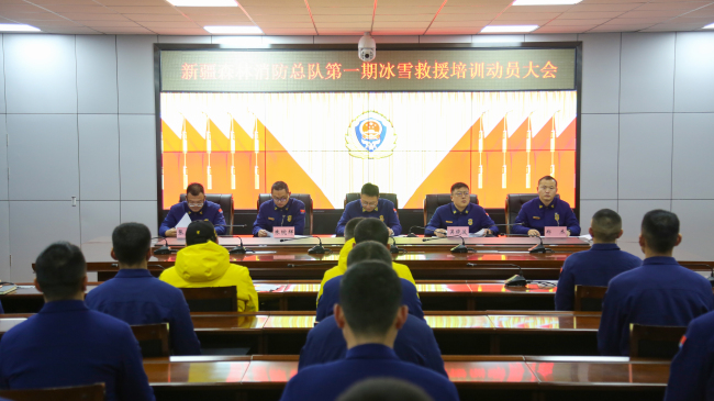 为进一步提升冰雪救援专业队伍建设,适应“全灾种、大应急”实战需要,加快冰雪救援机动队战斗力生成,12月11日,新疆森林消防总队第一期冰雪救援培训班开训仪式在阿勒泰地区森林消防支队五楼会议室举行,新疆森林消防总队副总队长项忠诚、特灾救援处副处长郑杰出席会议,全体参训学员参加会议。