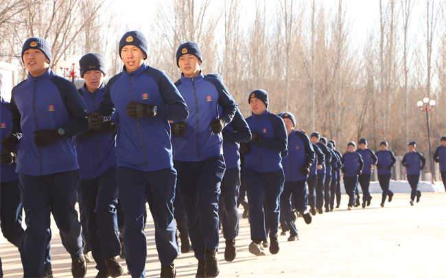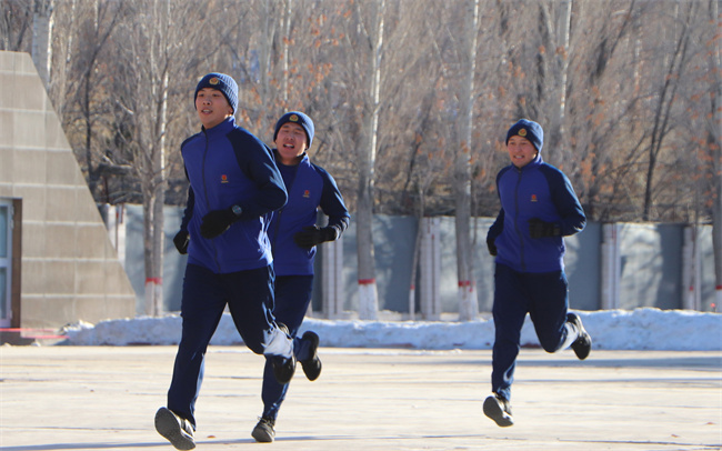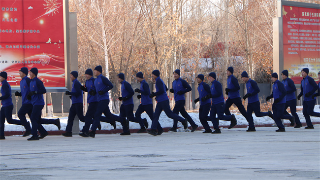 针对冬训气候寒冷、路面较滑、光线较暗等实际问题,大队积极做好训练保障工作,提前对室外训练。