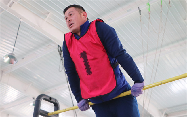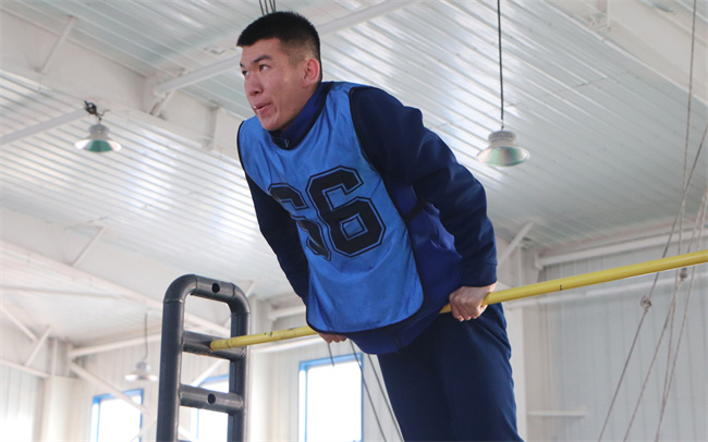 不断超越自我,刷新“龙虎榜”,是本次会操的主旋律。单杠卷身上,不单单是力量的比拼,还有技巧的运用,阿勒泰大队二中队二班预备消防士特列吾别克已经大汗淋漓,一声低吼从他的喉咙里发出,这已经是他完成的第39个单杠二练习。他在这之前最好的成绩是37个,今天已经突破了记录。但他还是没有下杠,在队友们阵阵的喝彩声、加油声中,直到精疲力尽,成绩定格在46个,拿下第一名。