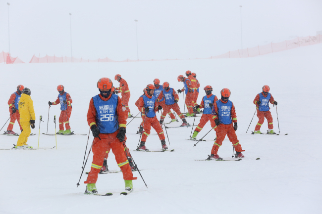 茫茫冰雪磨利剑,从难从严淬精兵。培训队员们迎着风雪在雪道上反复练习着蹬滑、“八字”滑、犁式制动、犁式转弯等动作要领,几个回合下来,汗水早已浸透了棉衣,但不管多冷多累,却没有一个人退缩和掉队。下一步,培训队还将按照计划,开展双板滑雪、雪崩救援行动、雪地摩托驾驶技术、高空索道救援等专项训练,切实增强参训人员雪域救援技术水平。