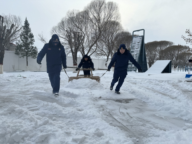 本网讯:(李强 杨长红)近日,巩留县连续降雪,积雪深度不断增加,给巩留森林森林消防大队的日常训练、工作、学习和生活带来了诸多困难和不变。为确保营区内部安全和工作正常运转,巩留县森林消防大队及时组织全体指战员开展扫雪除冰清理行动,确保队伍“四个秩序”正规有序。