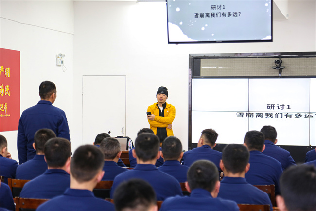 “如何规划你的线路?需要携带什么?如何使用雪崩安全装备?需要知晓哪些安全知识?这是一张通往大山粉雪的通行证。”培训中,阿勒泰雪崩研究与教育AARE团队彭超老师采取课堂讲授和现场演示的方式,详细讲解了自然灾害雪崩的安全意识与救援,主要对雪崩的形成、预防、安全知识和发生雪崩时如何搜救等内容进行授课。