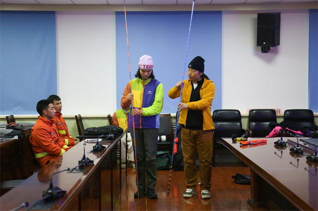 “通常,我们在要进入存在雪崩隐患区域时,应当首先目测山体角度、雪层状态,对应天气预报和雪崩预警,回顾数据细节,仔细记录观察结果……”在室外,彭超老师使用搜救装备进行现场示范,模拟搜救现场流程,与培训队员共同探讨景区各情景路段预防、搜救难题。
