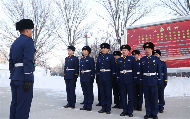 本网讯:(安宝)随着一缕阳光的照现,一阵阵整齐的步伐声、一声声响亮的号角声响彻营区。“稍息,立正,齐步—走”,在阿勒泰地区森林消防支队阿勒泰大队队列训练场上,队员们与秋风为伴,不惧严寒,一遍又一遍的训练着充满战斗精神、体现纪律作风的队列动作,充分展现出了新时代森林消队伍过硬作风的精气神儿。