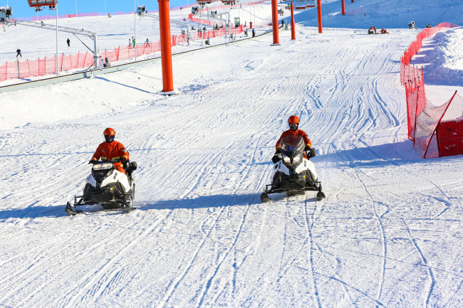 此次演练模拟受强降雪天气影响,新疆阿勒泰地区突发雪崩,一男子被埋进几米深的积雪中,情况十分紧急。冰雪救援机动队伍立即响应,集合一支10人组成的救援小队乘坐雪地摩托火速赶往现场救援。因路上积雪过厚在距离事发地近1公里的地方雪地摩托无法继续前行 ,队长王晶立刻指挥大家下车携带救援装备步行前往,在零下-35℃的低温中,救援人员迎着风雪踏上漫漫救援路。