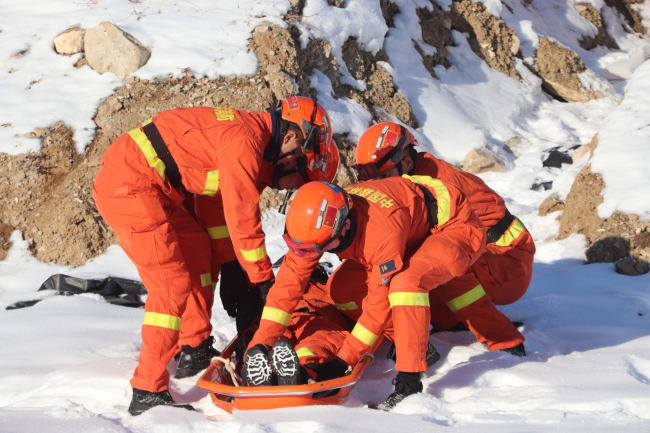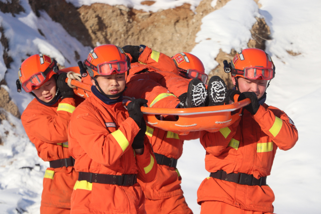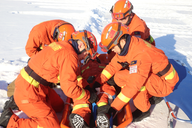 此次演练立足实战需求,结合驻地实际,模拟“富蕴县某滑雪场突发雪崩,多名人员被埋压”为背景。认真演练了启动应急响应、组织直前准备、组织机动、行动实施等内容。