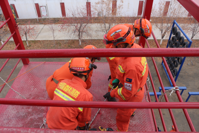 大队紧扣“练为战”的实战要求,以强化个人体、技能素质和提升整体实战能力为目标,按照“实战实训、按纲施训、从严治训”的训练思路,采取体能与技能相结合的方法科学组训。针对新疆阿图什12月19日5.5级地震的实际,重点对绳索、冰雪、地震装备操作综合演练和实战救援科目展开训练,全方面锤炼指战员实战能力,确保队伍综合素质能力得到提升。