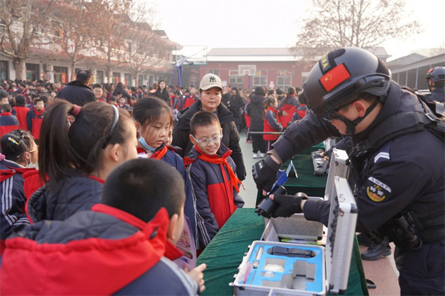 通过“警营开放”进校园活动,不仅为同学们提供了一次“沉浸式”体验警营生活的机会,也通过观摩、宣讲、体验等方式,增强了青少年遵纪守法意识和安全防范意识,并通过学生们的“小手拉大手”,进一步传播禁毒防毒、交通安全、反电信诈骗等方面知识,增进了师生们对公安队伍的了解和信任,传递了勇敢正义、正气凛然的正能量,全力推进平安校园建设。
