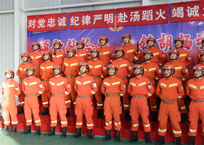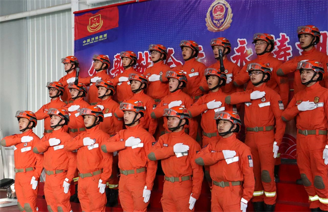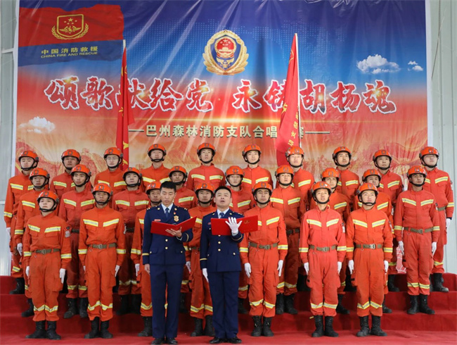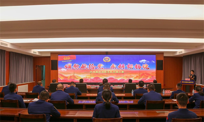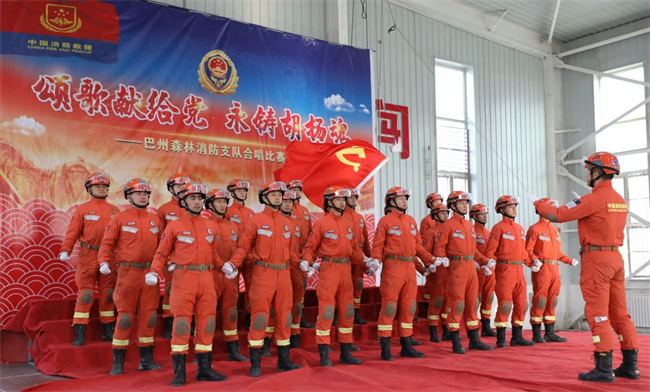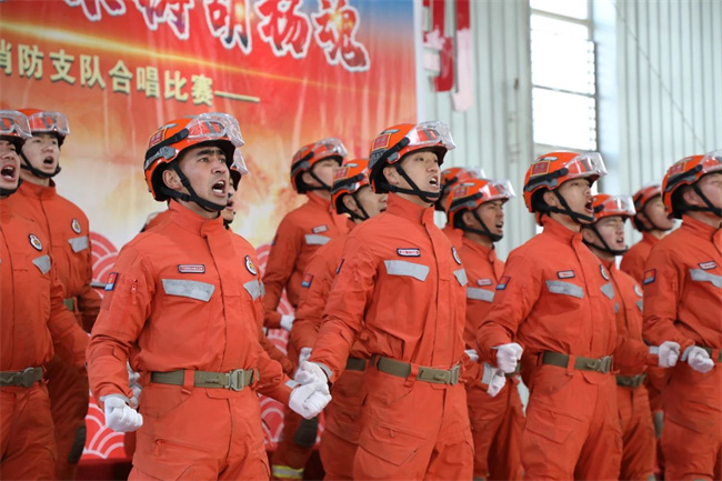 《火焰蓝战歌》《祖国不会忘记》《我们走在大路上》《人民需要我》......比赛中,各参赛代表队以饱满的热情引吭高歌,灵活运用领唱、指挥、伴奏、朗诵、舞旗等形式增强舞台效果,将比赛一次次推向高潮。全体指战员用一首首经典的革命歌曲和消防战歌,表达了对党的无限忠诚,对人民的无限深情,对国家的无限热爱,唱出了消防救援人员攻坚克难、敢打必胜的顽强斗志。