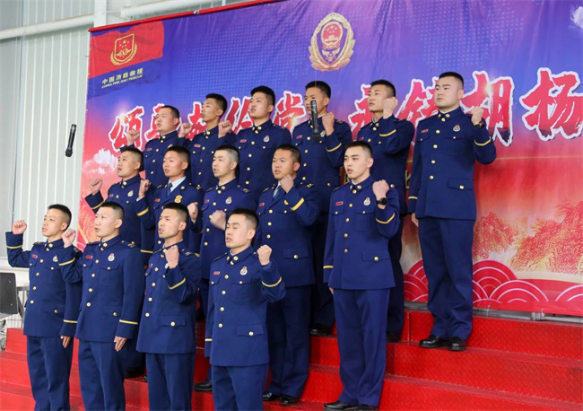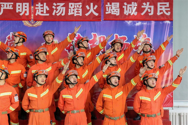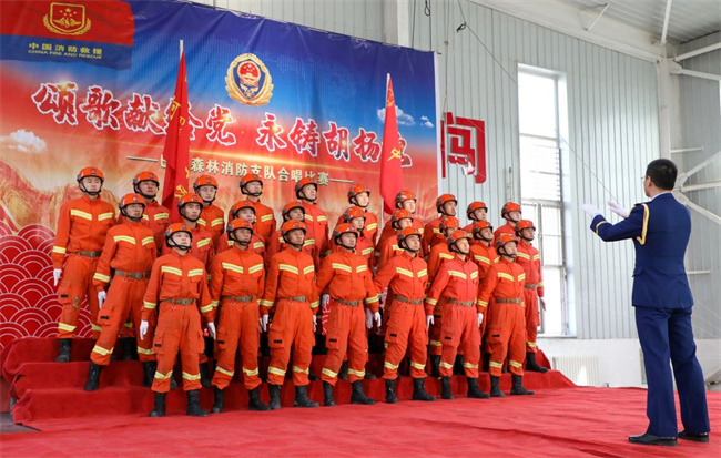 “你把赴汤蹈火的性格,藏进了朝霞的外表,为什么呀一穿上你……”在《红战袍》激昂的旋律中,比赛正式拉开了帷幕。动人的旋律、深情的演唱让现场激情澎湃,展现出森林消防队伍传承红色基因、弘扬革命精神,在党的旗帜引领下续写荣光的豪迈气概。