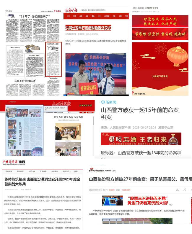 《偷梁换柱赚“快钱”涉嫌盗窃锒铛入狱》、《洪洞:优化营商环境 助力经济发展》、《民生为先 破案为本 安定为基 洪洞公安夏季治安打击整治行动成效凸显》等稿件分别在《人民公安报》《山西法治报》刊登后,引发了广泛关注热评。
