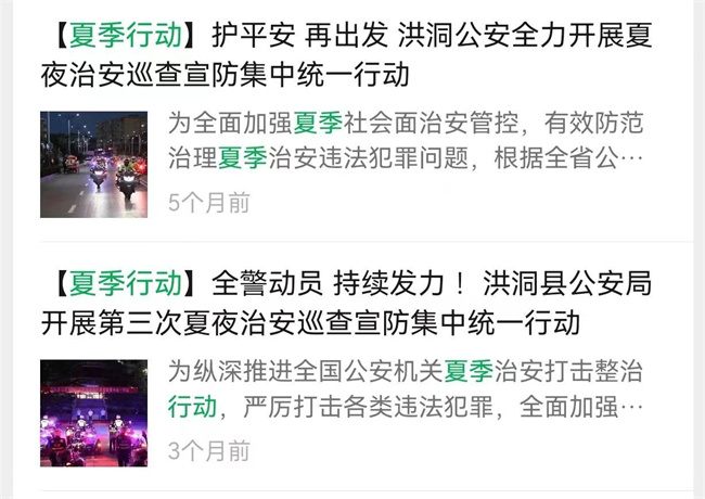 结合全年重大活动和重要时间节点,设置专题专栏,推出【春节我在岗】【致敬了不起的她】【致敬·缅怀·奋进】【五一我在岗】【护航高考】【夏季行动】【警营教师节】等专题专栏,不断壮大正面宣传声势,全面展现洪洞公安铁军形象。