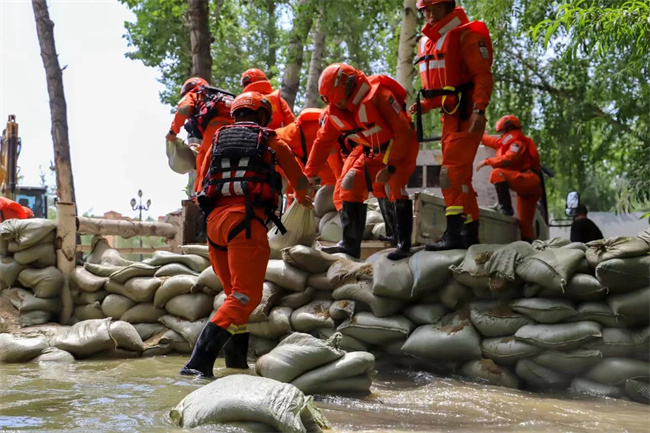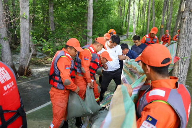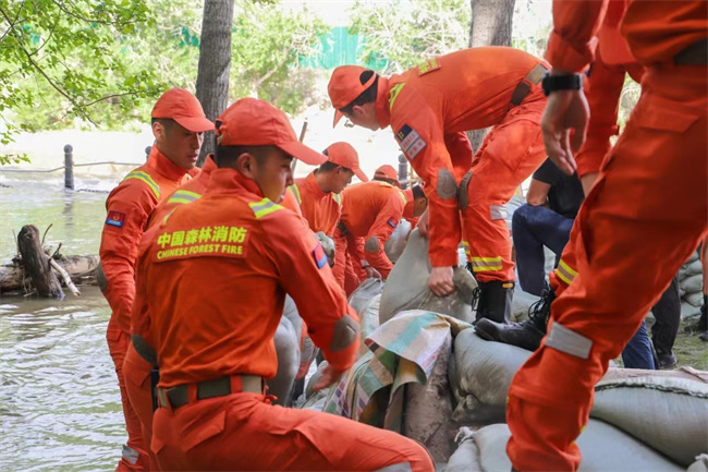 急难险重,始见担当。在防汛抗洪任务中,全体参战人员争分夺秒、积极奋战,攻坚克难、无惧艰辛,累计执行防汛抗洪任务15小时,完成填装搬运沙袋7000余袋,完成100米防护堤坝堆积任务,累计堆沙袋11700余袋,充分展现了顽强拼搏、无私无畏的精神风貌,发挥了应急救援的主力军和国家队作用,赢得驻地群众的一致好评。