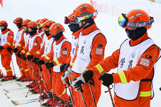 “制动主要采取两种方法,一种是初学者用的犁式制动方法,膝盖向内微弯让雪板内刃倾斜,以达到制动的目的……”训练中,教练严格遵循由易到难、循序渐进的原则,结合训练情况,让参训队员逐一操作,逐个纠正问题,全体参训队员态度端正,虚心请教、细心领悟,在茫茫雪道上,反复体会着动作要领。“开展滑雪专项训练,是应对冬季冰雪灾害救援行动的有力举措,在救援车辆无法到达的区域,救援人员能够通过滑雪的形式快速到达救援现场有效处置,最大限度保护人民群众生命财产安全。”阿勒泰地区森林消防支队一中队中队长王晶说道。