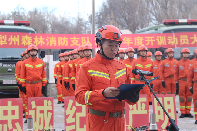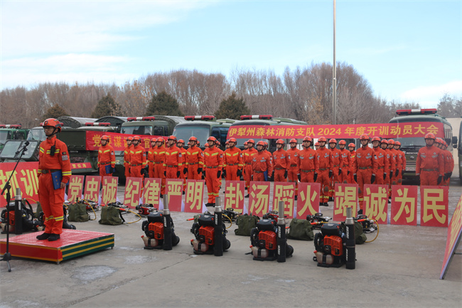 本网讯:(滕格斯)战鼓擂动催征急,千帆竞发谱新篇。为奋力开创支队训练工作新局面,凝聚思想共识,鼓舞激励斗志,树立鲜明导向,提振消防救援人员训练热情,1月2日,伊犁森林消防支队隆重召开2024年度开训动员大会,巩留大队全体消防救援人员在分会场参加大会。