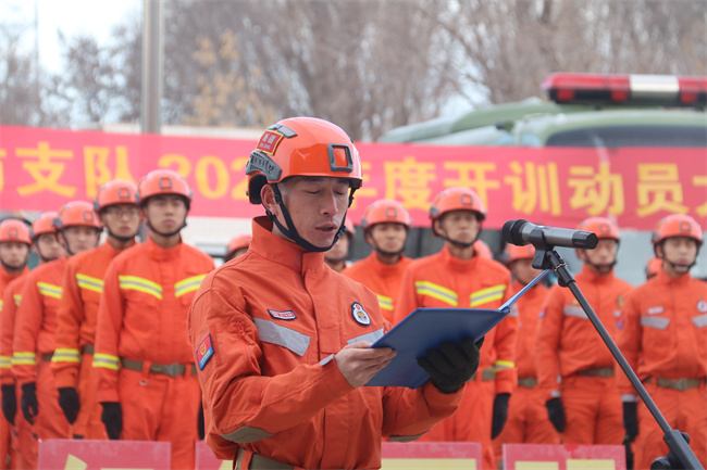 动员大会上,支队政治委员张涛同志宣布了开训动员令,各大队主官分别进行了表态发言、各中队开展了挑应战,在分会场全员整齐列队、精神抖擞、誓言铿锵,救援车辆、防火灭火装备物资分类摆放,以悬挂醒目横幅和训练标语等多种形式,全面营造了新年度浓厚的开训氛围,点燃了全体消防救援人员对完成好新年度工作任务的无限热情。面对新的起点、新的征程,全体人员目标坚定、士气高昂,下面就让我们一起来听听他们的开训感言。