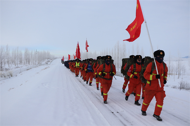 本网讯:(周宇)新年伊始,为深入贯彻局、总队冬防冬训指示精神,提高防灾、减灾、救灾综合能力,1月4日,阿勒泰地区森林消防支队富蕴大队以支队野外徒步行军活动为契机,利用行军间隙,开展低温雨雪冰冻灾害救援演练。