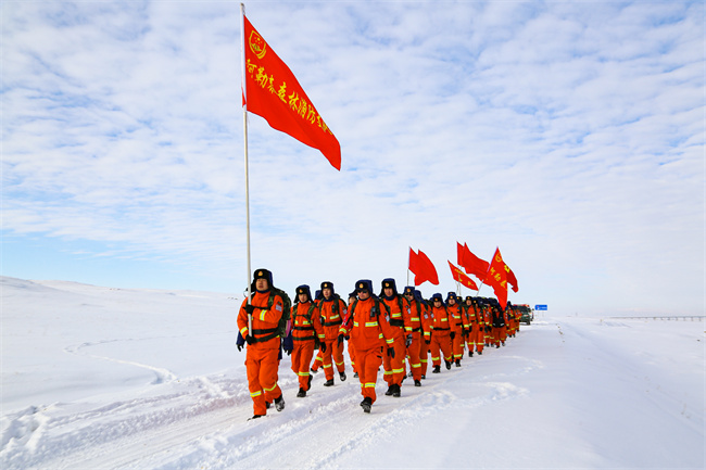 据了解,此次拉练主要以徒步行军为主,穿插进行判定方位、按图行进、GPS使用、冰雪灾害救援行动、应急通信保障、卫生与救护、野外炊事制作、车辆故障排除、长途奔袭等诸多科目。全体队员身负20公斤重的背囊,不怕困苦、士气高昂,战严寒、砺血性、提能力、谋打赢,充分展示了消防救援人员顽强战斗作风和良好精神风貌。代支队长朱皖辉说道:“站在新的历史起点上,我们必须对标消防救援机动队伍职能定位,以时不我待的紧迫感强素质、练本领,努力打造出一支应急救援精兵劲旅。”