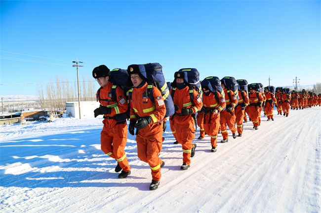 寒风凛冽,旌旗飘飘。为促进年度训练工作落实,更好的打牢队伍训练基础,全面掀起“冬训促强能、百日砺精兵”活动热潮,1月4日阿勒泰地区森林消防支队阿勒泰大队组织开展野营拉练训练,全体指战员战风霜、斗严寒,一路翻山越岭,披荆斩棘。
