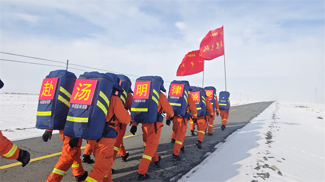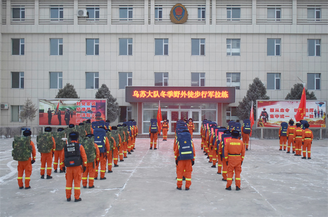 本网讯:(岳俊伟)为深入贯彻落实总队冬季大练兵方案要求,结合近期气候实际和大队冬防冬训任务需要,乌苏市森林消防大队扎实组织30公里野外负重徒步行军拉练活动,磨炼广大指战员意志品质,培养优良战斗作风,持续掀起冬季练兵热潮,锤炼应急救援精兵劲旅,全面提高防灾、减灾、救灾综合能力。