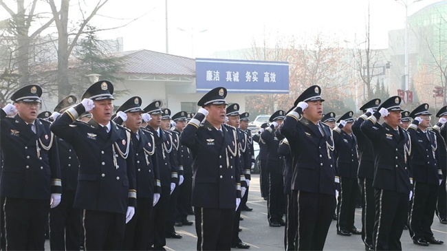 面对神圣的警旗,政府副县长、公安局局长闫志伟带领全警重温公安机关人民警察誓词,全体民辅警坚定举起右拳,庄严宣誓:“我是中国人民警察,我宣誓,坚决拥护中国共产党的绝对领导,矢志献身崇高的人民公安事业,对党忠诚、服务人民、执法公正、纪律严明,为捍卫政治安全、维护社会安定、保障人民安宁而英勇奋斗!”铮铮誓言表达了洪洞公安对党和人民的无限忠诚,对警察事业的无限热爱。
