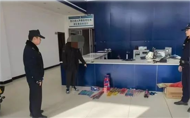 2024年1月12日,大张中心派出所民警在工作中发现韩某林(男,现年26岁,大张镇人)在其车库内非法存放烟花爆竹,民警现场查获各类烟花爆竹40箱。