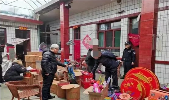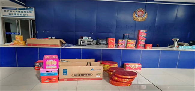 2024年1月11日,南环派出所民警在日常工作中发现王某恒(男,现年23岁,大张镇人)在南环办月亮湾小区销售烟花爆竹,民警现场查获各类烟花爆竹23箱。